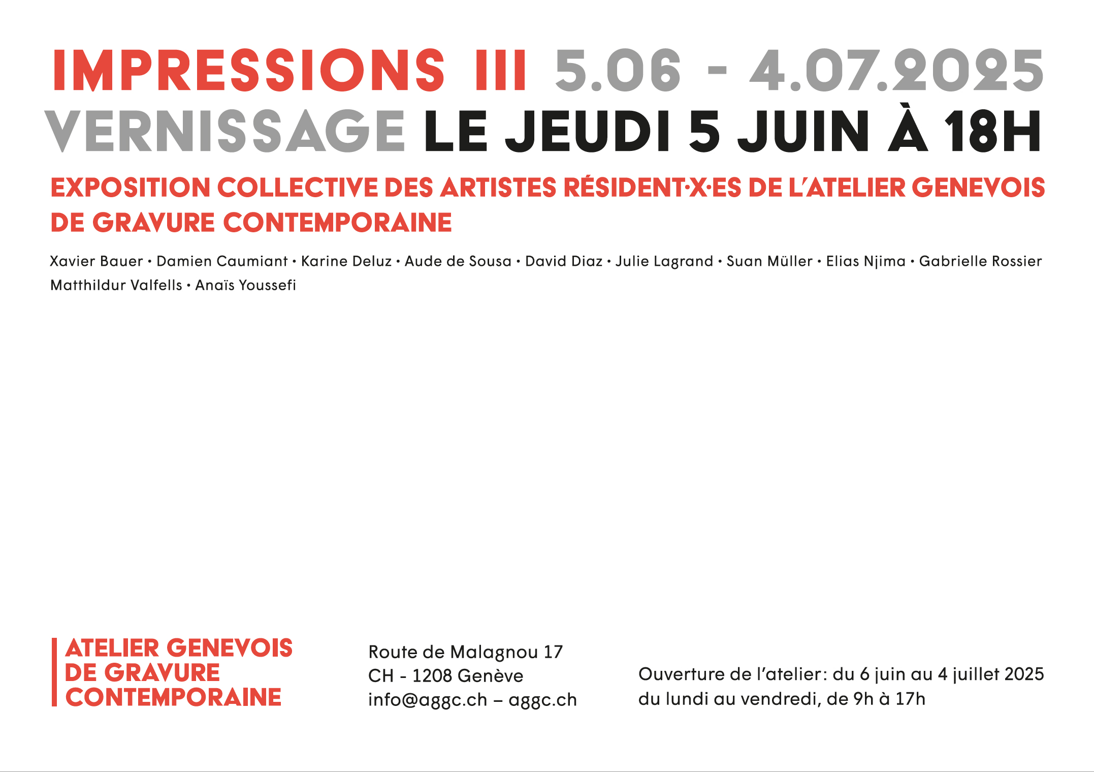 La dernière exposition « Impressions III » a eu lieu du 5 juin au 4 juillet 2025, à l’Atelier.