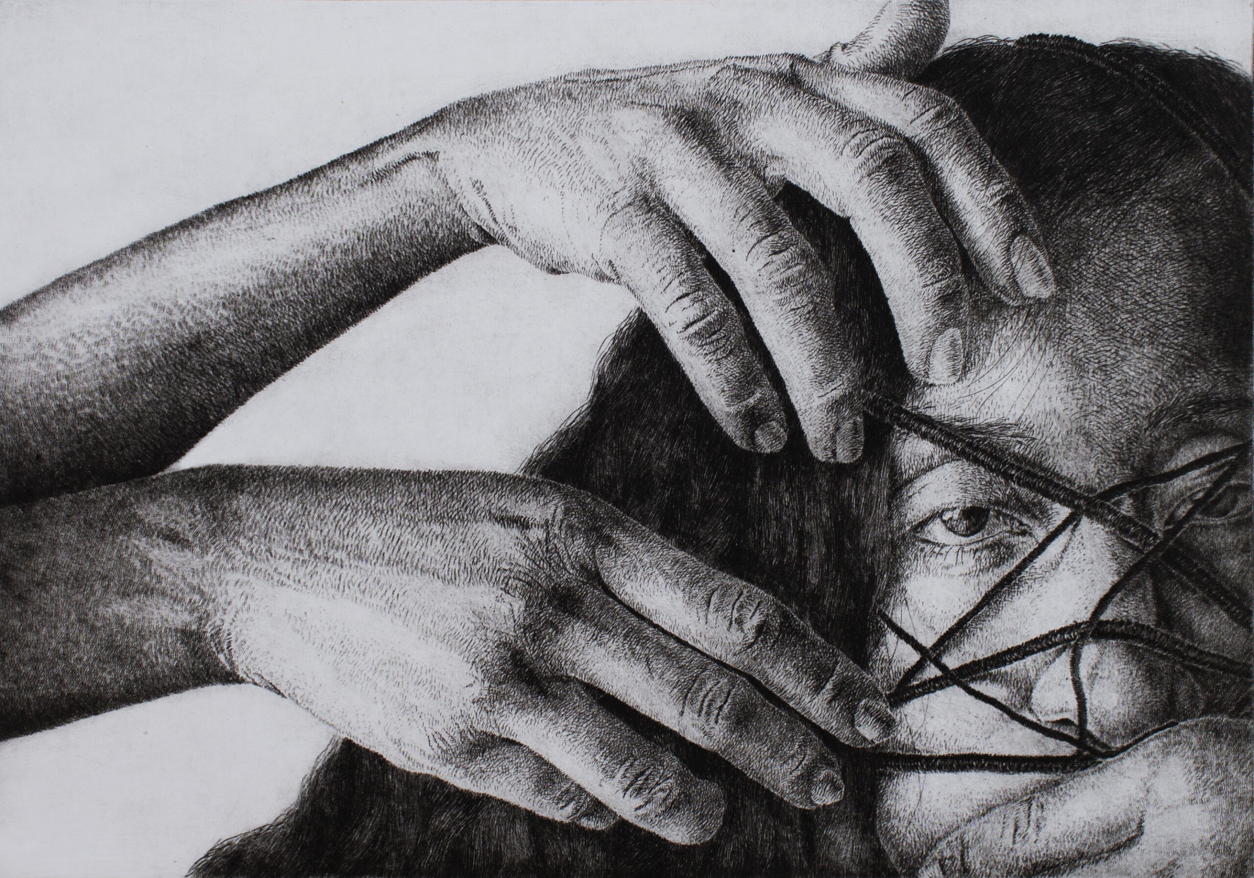 Me rodeas de sombra, Pointe sèche, 20 x 28.5 cm, 2023. ©Angela Salas