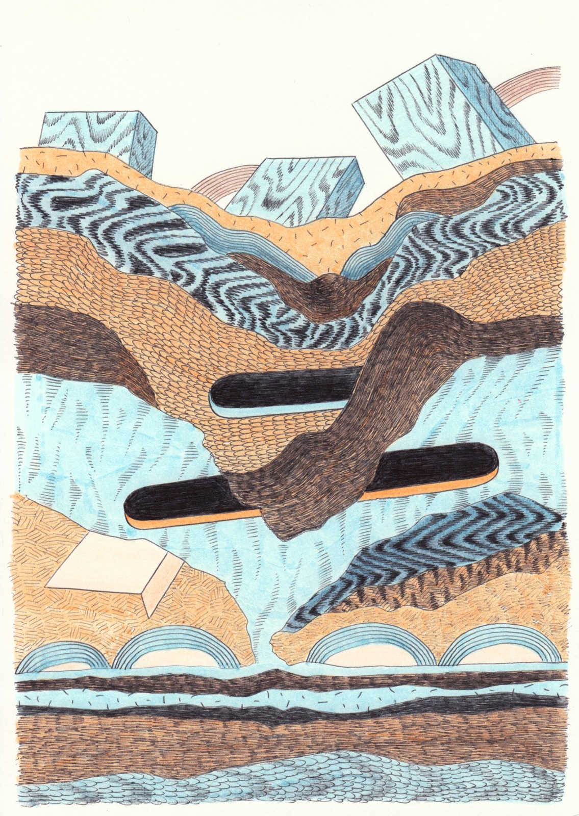 Géologie II – 10.5 x 14.8 cm – stylo bille noir + feutres pigmentés – 2025